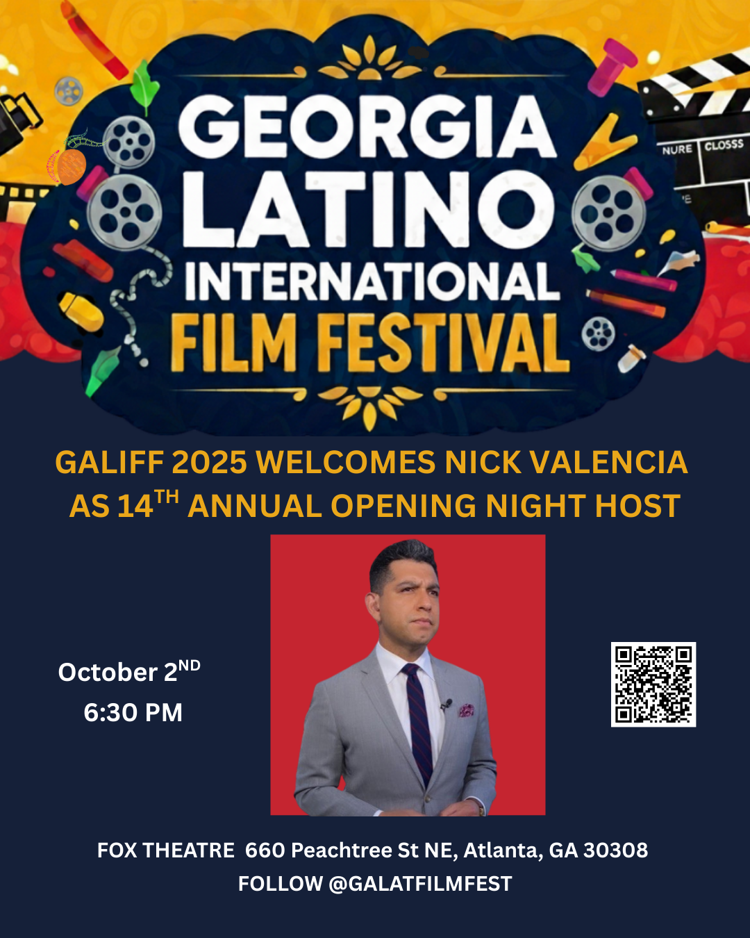 The Georgia Latino International Film Festival Welcomes Nick Valencia as Host of Our 14th Annual VIP Opening Night Red Carpet VIP Affair. Annoucements, GALFA, GALIFF, Georgia News, News The Georgia Latino International Film Festival Welcomes Nick Valencia as Host of Our 14th Annual VIP Opening Night Red Carpet VIP Affair.Jose2025-09-19T17:31:04-04:00September 19th, 2025|Annoucements, GALFA, GALIFF, Georgia News, News|Read More